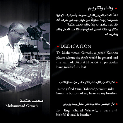 الشاعر الغنائي أسامة السعود – الأخ المهندس خالد وظائفي – المهندس والملحن والأخ محمد عبود (أبو سعد) – الرائع ينال طاهر – عازف الكمان سامر جندلي الذي يتحمّلني أثناء عمليات التنويط للوتريات في أعمالي ويتعاون فنياً بكل إخلاص لرفع سوية تسجيل الوتريات المهم جداً في مؤلفاتي الموسيقية – أمين الزلجامي من المغرب لمساهمته الكبيرة في الحصول على آراء العديد من الفنانين بـ سعد الحسيني من خلال استضافة منتديات ستار تايمز لهم ـ الدكتورة غادة دهمان في مساهمتها وتدقيقها للترجمة إلى اللغة الإنكليزية في كافة أعمالي المنشورة – أحمد حمامي في صياغته وتدقيقه للغة العربية في هذا الموقع – عدنان قدسي وأسامة أوغلي ونائل المجتهد من Fan Media Co. ، والشكر كل الشكر لسائر أصدقائي وكل من ساهم في موسيقى سعد الحسيني